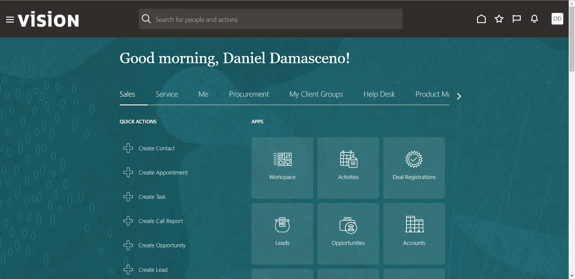 When you log in to Oracle Applications Cloud, the Welcome Springboard, also known as your landing page, appears. The view depends on your roles and privileges.
